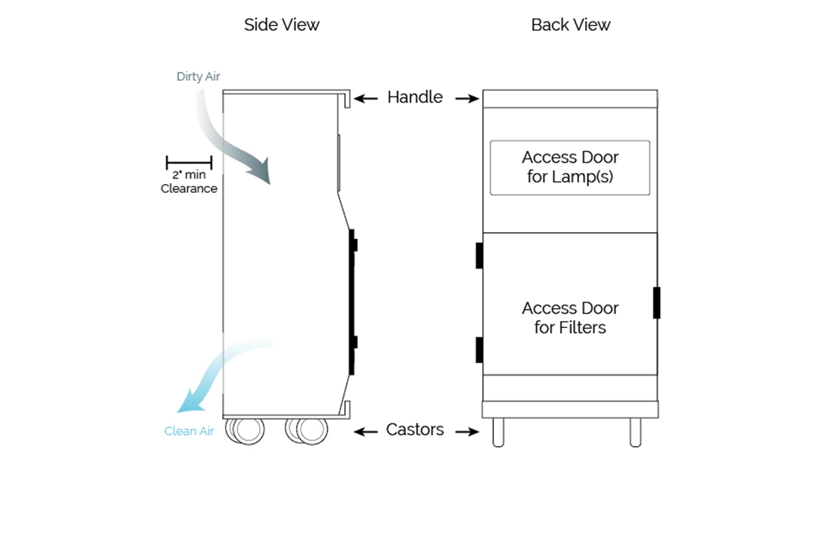 Designed for nursing homes and medical clinics, to improve the air quality of immunocompromised patients.